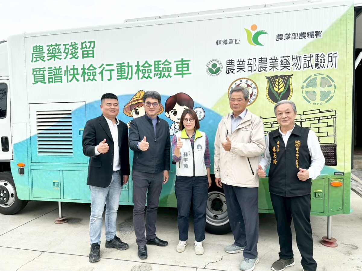 ▲現場草莓透過台大植物教學醫院提供的農業殘留質譜快檢行動檢驗車現場檢驗,顯示為零農藥殘留。(記者蘇峯毅攝)