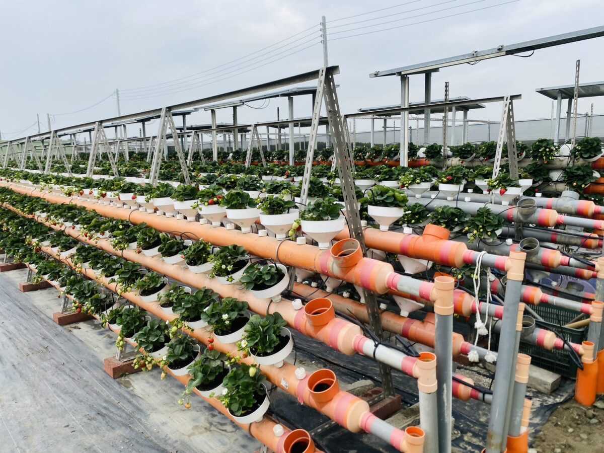 本次記者會另一項亮點為深水式魚菜共生系統的實際展示。該系統結合水產養殖與水耕栽培,作物根系可直接吸收魚類代謝所產生的養分,同時達到水質淨化效果,淨化後的水再回流至魚池循環使用,成功應用於草莓等高經濟價值作物,讓不少來賓直呼新奇又實用。
