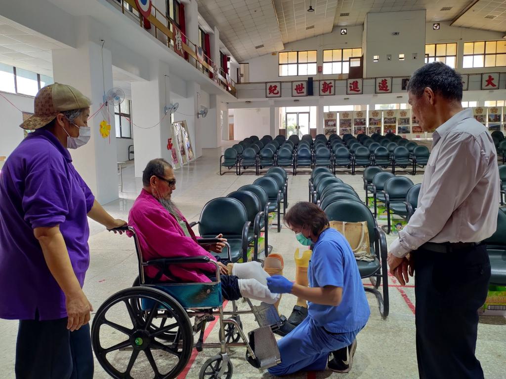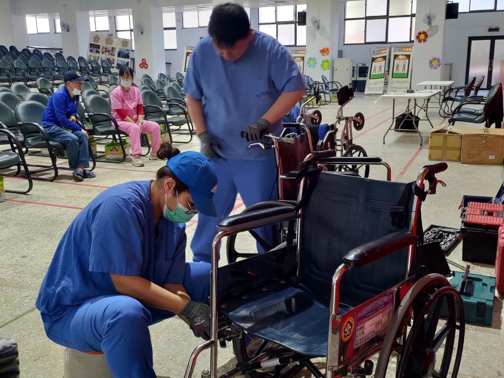 榮家說明,本次巡迴維修服務由林榆凱社工師領隊,並由王宗揚、林佳儒、阮銘等多位專業技術人員共同參與,為榮民提供義肢量測與調整、輪椅檢查與修理、鞋類輔具維修等多項服務,確保輔具能於安全、舒適狀態下持續使用;當日亦針對輔具零件更換與細部調整進行全面檢修,並提供個別化專業諮詢與建議。