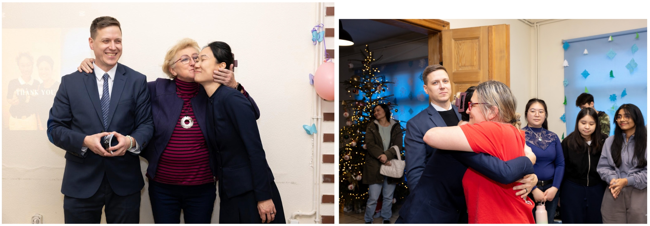 教室另一側,坐著 六位來自台灣的志工,以及 一位來自馬來西亞的志工。其中四位是醫師與醫學生,有人長期在慈濟擔任英語教師,陪伴戰後來到波蘭的烏克蘭孩子補強課業;陳亮妤醫師自 2023 年起帶領「華語俱樂部」,並協助烏克蘭醫師在波蘭取得合法執業資格。鄧姮琦與女兒 楊雲霆則自 2022 年起,持續為慈濟設計手繪靜思語書籤,將溫柔與祝福送到更多人手中。