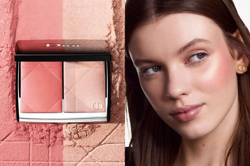 DIOR 的超完美雙色頰彩盤,是結合霧面與打亮妝效的頰彩盤,質地柔軟滑順,打亮粉體帶有細緻的珍珠光澤,更能加強臉部輪廓立體度。其中 #257 DIORIVIERA,是一款玫瑰粉+香檳金的組合,不管是兩邊混著用,或是只用玫瑰粉,都很適合上在眼下的位置,也可以在完妝後,使用香檳金點在眼頭、顴骨、鼻頭等位置,讓妝容更精緻。