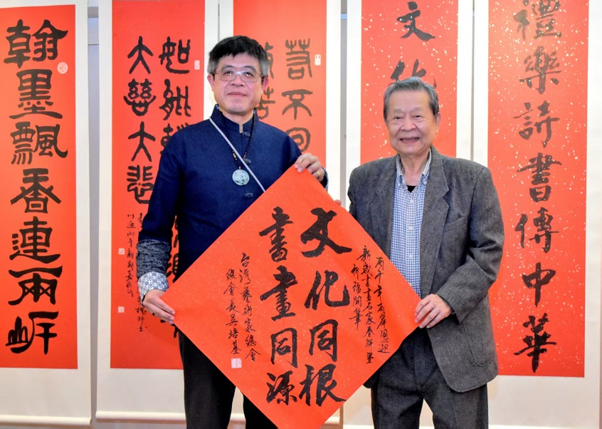 台灣藝術家總會總會長吳培基也致贈賀詞「文化同根、書畫同源」,期盼未來能有更多兩岸藝文交流機會,促進文化融合。