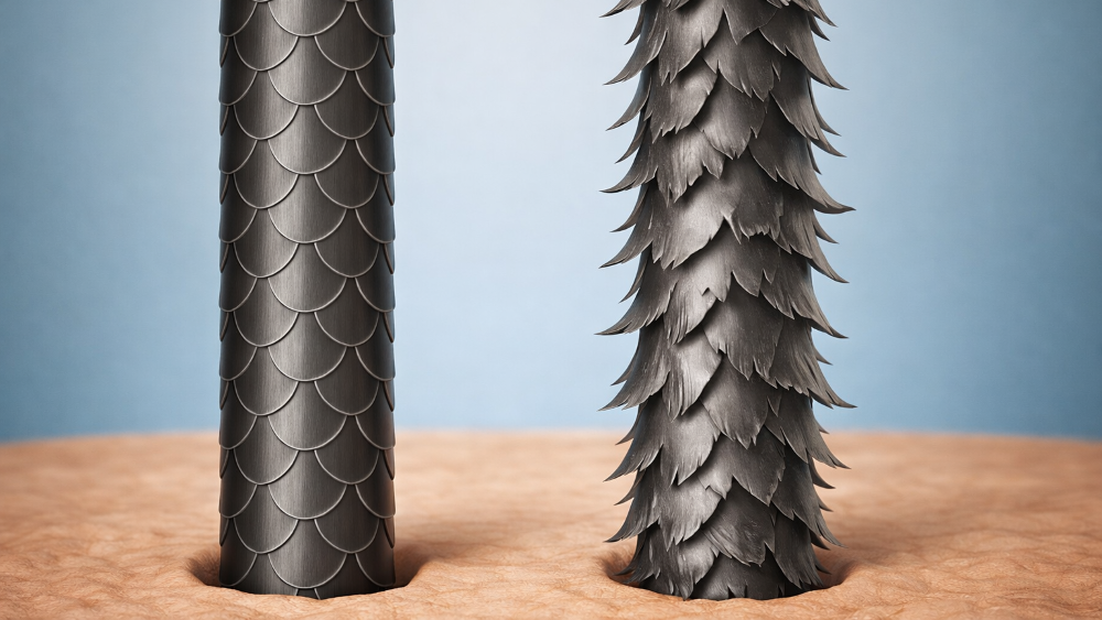 毛鱗片雖然薄,卻負責多項關鍵功能,像是保護頭髮內部結構、維持水分與養分、也決定了頭髮的觸感與光澤。