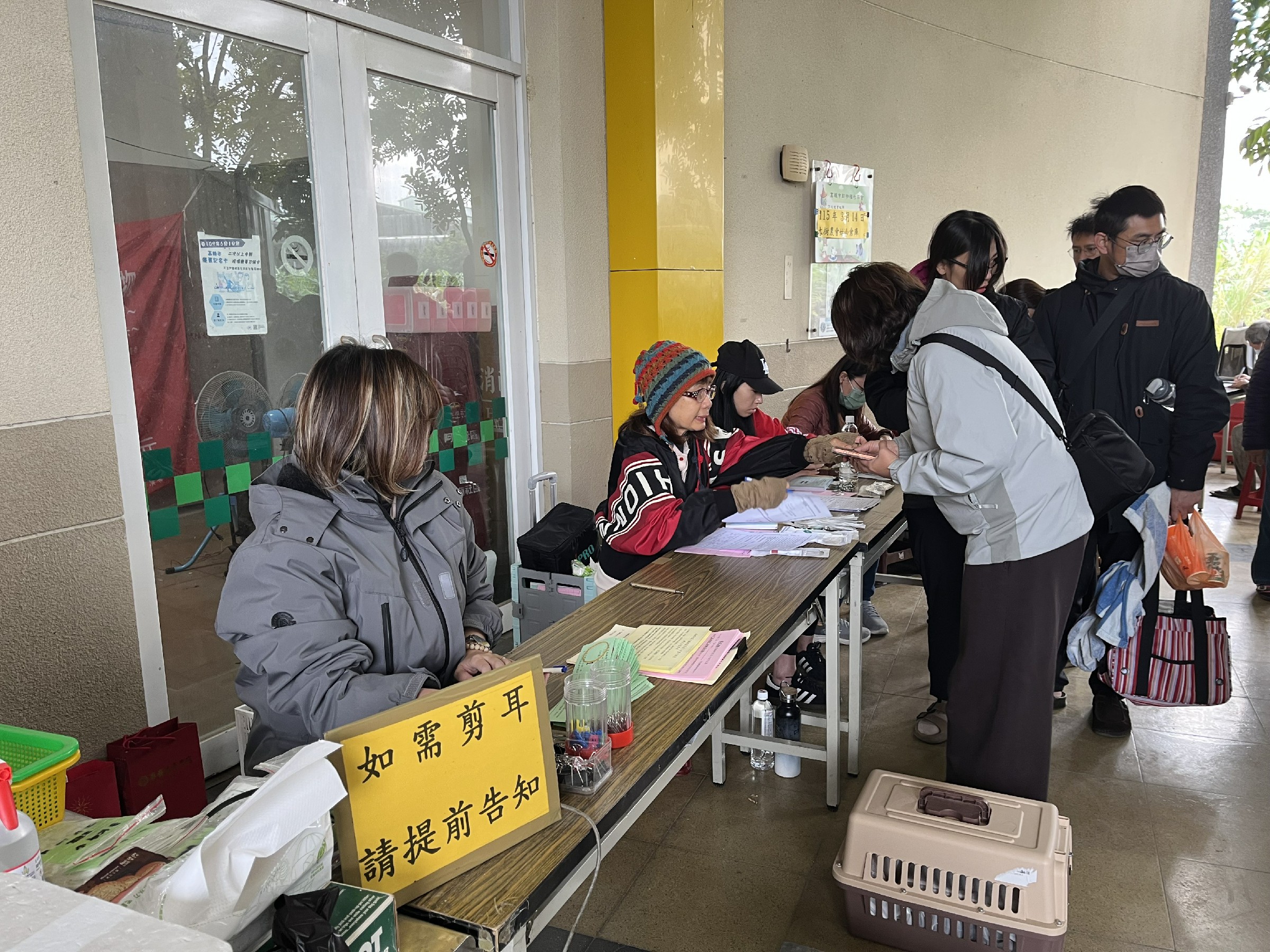高雄市動物保護處8日前進阿蓮區老人活動中心,舉辦115年首場偏遠地區巡迴犬貓絕育三合一活動,提供免費犬貓絕育手術、晶片植入與寵物登記、狂犬病疫苗施打及動物醫療諮詢服務,吸引大批飼主帶著家中毛孩前來參與,為新的一年替寵物領取象徵健康與安心的「醫療紅包」。