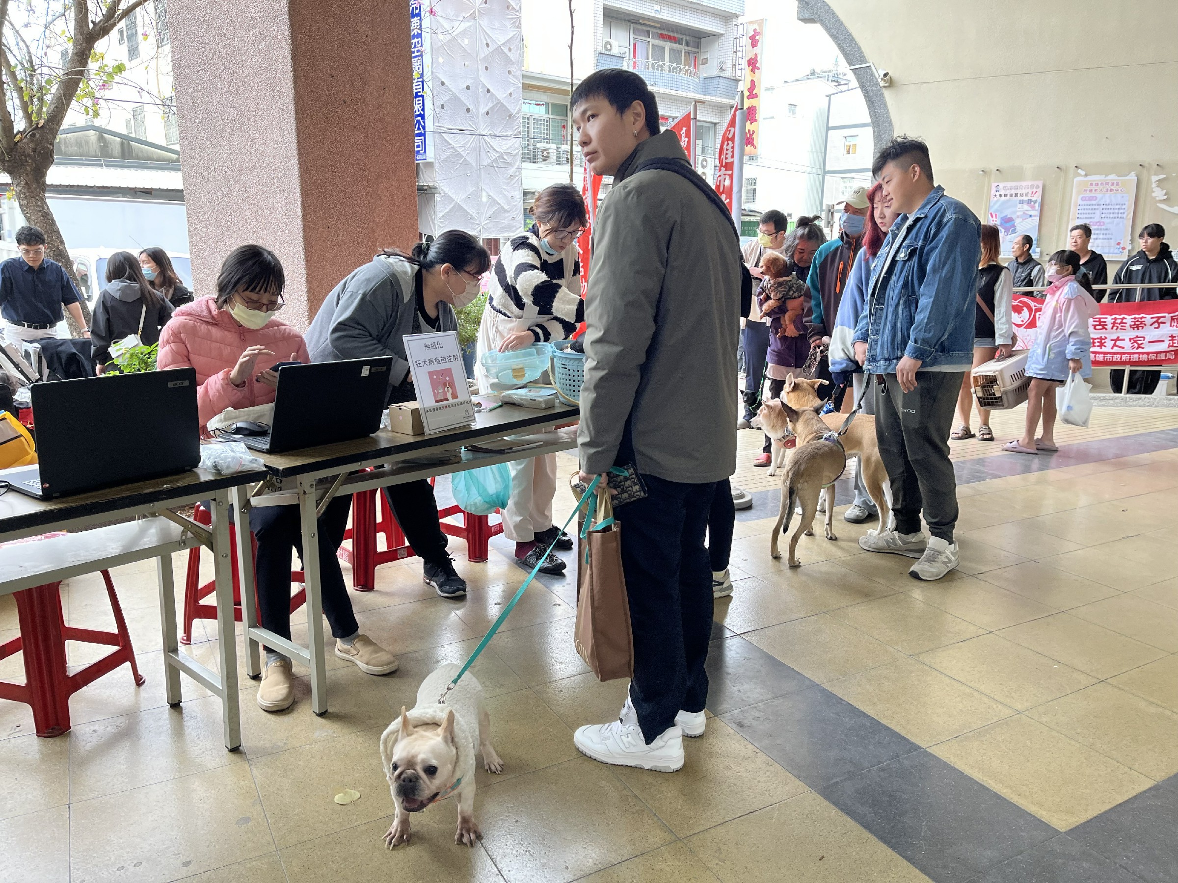 ↑圖說:鄉親們紛紛帶著家中犬貓前來領取這份春節前犬貓醫療大紅包。(圖片來源:高雄市農業局提供)