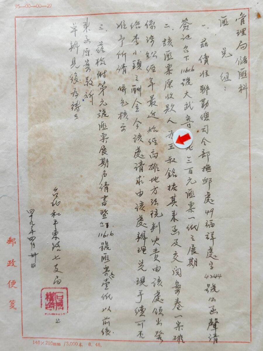 我一友人,主動讓藏一極富歷史價值的郵政文獻,此匯票聲請展期兌付,開票日為民48年 2月23日,因涉訴訟,後由高雄地方法院判決,聯勤總部撫卹處領回,發還李小康,此匯票由李小康具名,匯給時任參謀總長空軍一級上將王叔銘(任期46年 7月 1 日 ~ 48年 6 月30日),展付日期49年 4 月28日提出,金額為新台幣 300 元,當時的 300元,應是一位少校 一月有餘的薪俸(我父親46年 7 月結婚,當時他少校月俸 220元),可以窺知當時國家處境之艱困,軍人待遇之微薄,縱是位高權重的總長 ,300 元對他家庭生活,亦是不可或缺的經濟來源。