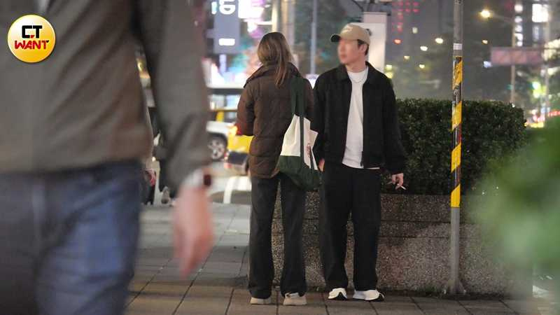 8點出頭,小倆口吃飽喝足一前一後走出餐廳,走在前方的男生在門口等著莫允雯,走下台階後還不忘再度回頭確定對方是否跟上,接著2人並肩同行餐後散步,如此舉動大概可以判斷出兩人的關係。隨後,2人在人來人往的忠孝東路街頭停下腳步,男的點了根「飯後菸」吞雲吐霧,而莫允雯看來並不排斥煙味,依舊陪伴在男伴身邊。滿足煙癮後,男生彈掉菸頭並踩熄,拿著菸蒂繼續散步。