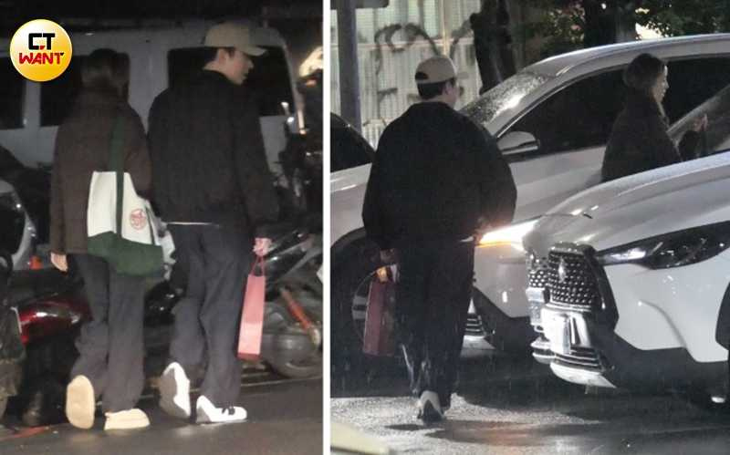 接著,兩人走回晚餐火鍋店附近的停車場取車,此時四周沒什麼人,莫允雯與男方雖未有太親暱的舉動,但肢體緊靠在一起,顯然是對彼此很信任的關係,因莫允雯有近170公分的身高,在高大的男生旁邊也很登對,接著她便開車,載著男伴回到住處。