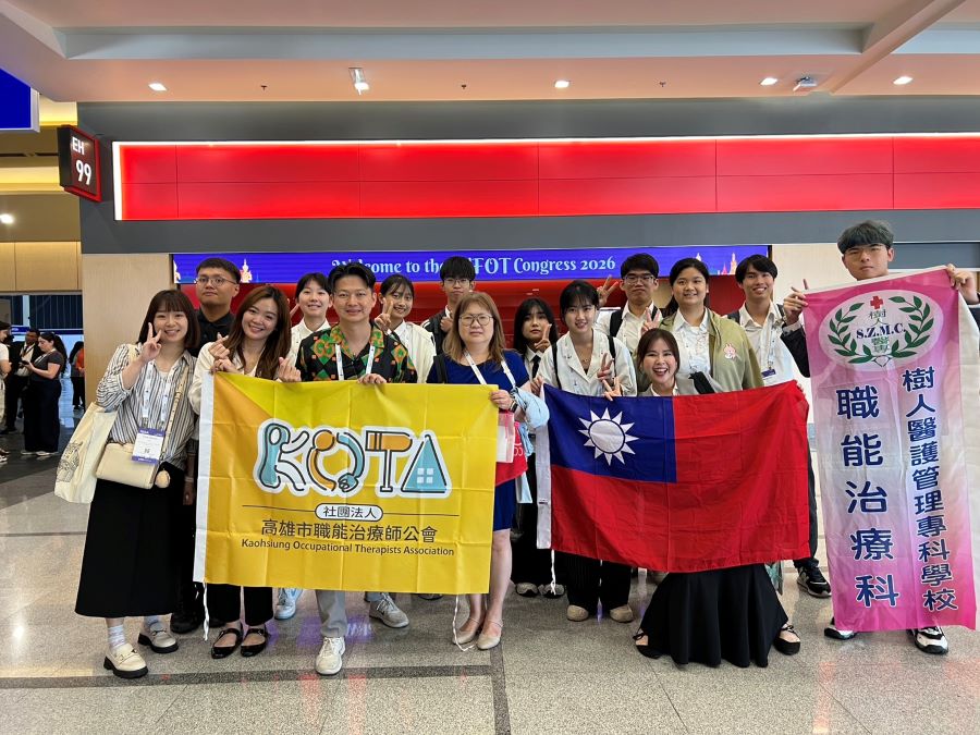 為培育具備國際視野之專業人才,樹人醫專特別投入經費補助師生參與國際研討會,積極降低學生參與國際學術活動的門檻,使年輕學子得以走向世界,與各國專家學者直接交流。學生勇於以英文進行專業表達,顯著提升學術動機與自信心,也更加理解研究與臨床實務之間的連結,對未來專業發展與視野開拓具有重要啟發。本次參與WFOT研討會,不僅是學生學習歷程中的重要里程碑,更彰顯樹人醫專長期深耕專業教育的成果。