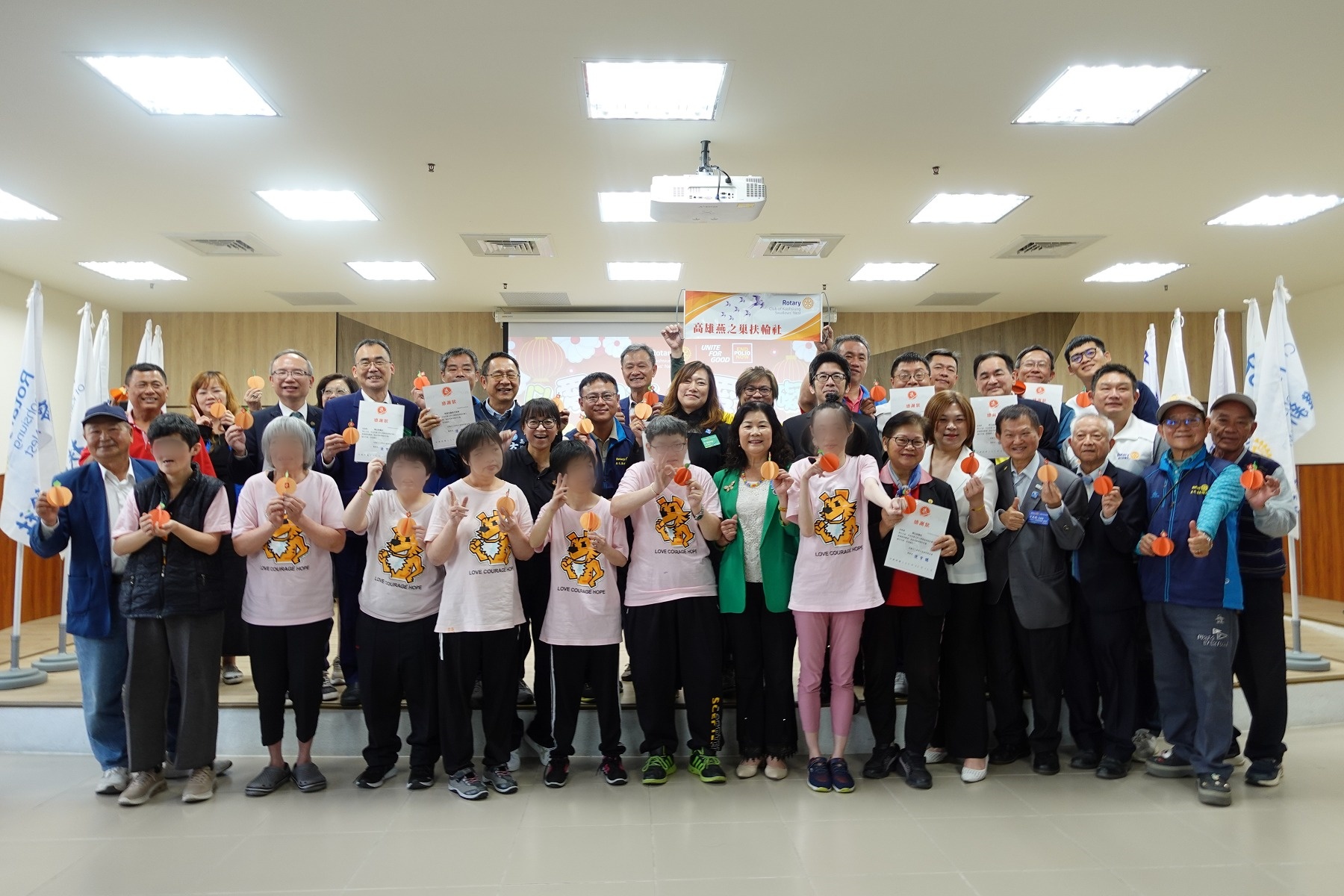 農曆春節將至,國際扶輪3510地區高雄燕之巢扶輪社集結在地力量,號召九個友社於11日前往伊甸基金會高雄燕巢家園,陪伴身心障礙朋友進行立體紙藝橘子手作活動,並共同捐贈新台幣10萬元,以實際行動為寒冬中的弱勢族群送上溫暖祝福。