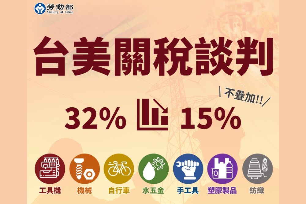 協定確立對等關稅為15%,且不疊加既有稅率,更取得半導體、資通訊產品及232條款相關項目最優惠待遇;並透過本次貿易協定,在勞動權益保障方面,也達成合作共識,將透過接軌國際要求,進一步強化勞工權益。