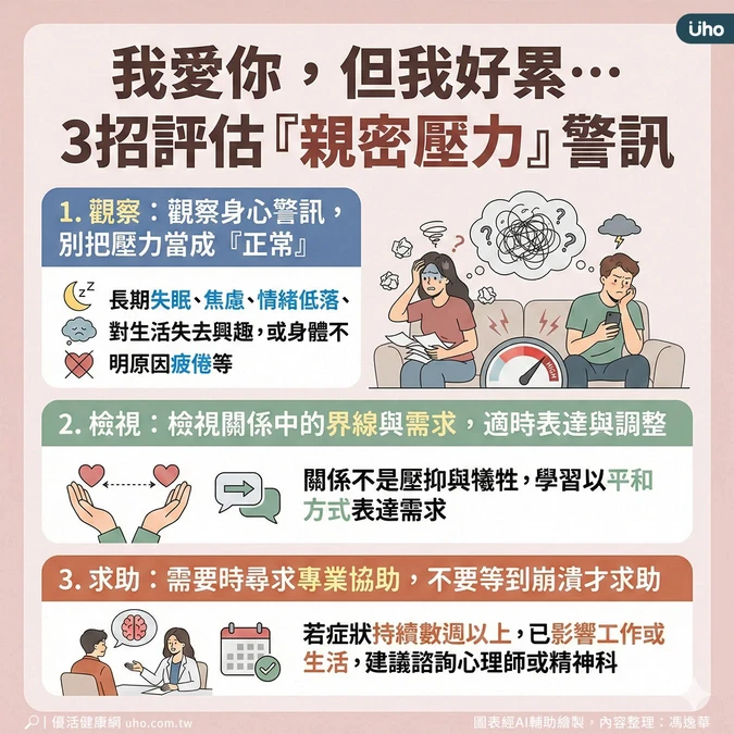 本文授權轉載自《優活健康網》,原文為「我愛你,但我好累⋯」小心愛情壓力已超出負荷!醫教3招自我判斷