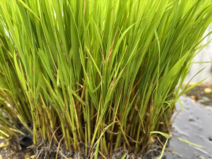 ▲觀察田邊剩餘秧砧監測稻熱病發生情形,若出現病斑,建議盡速移除,本田染病秧苗盡速以核准藥劑進行防治。
