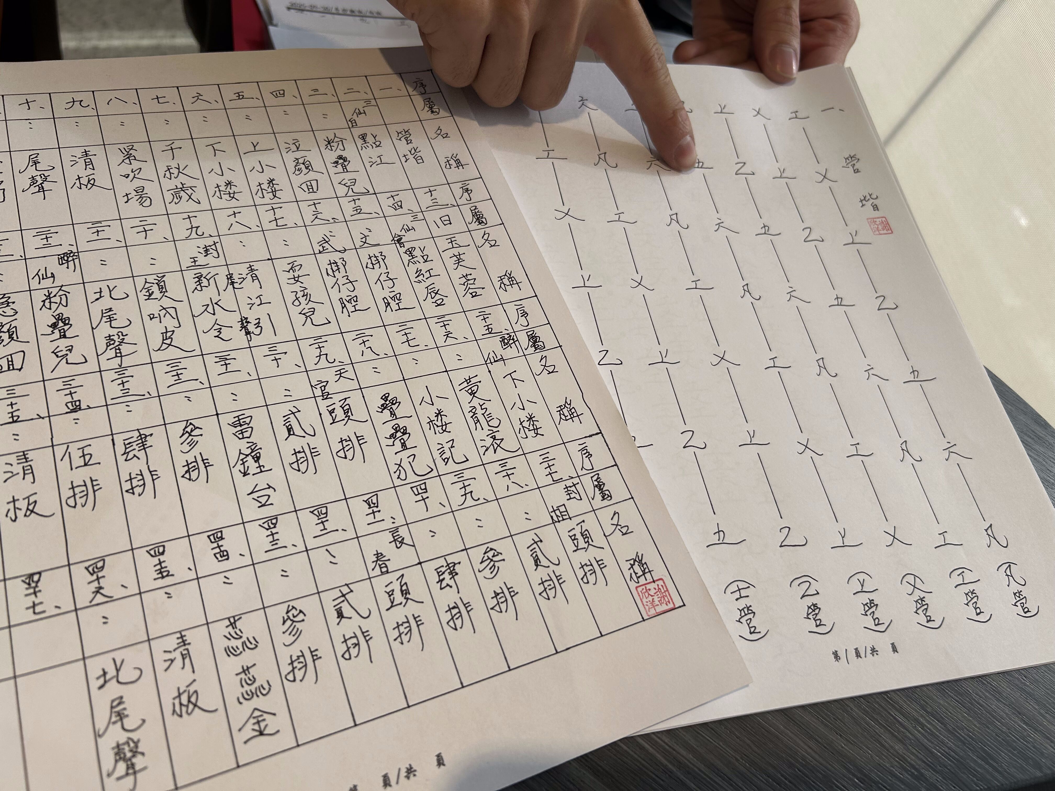 採訪過程中,謝欣洋翻開隨身攜帶的北管樂譜筆記,厚厚一疊,向記者展示多年來親手整理、書寫的工尺譜與研究筆記。他表示,自己長期走訪各地圖書館查找文獻,也向不同地區的師傅請益,希望未來能將這些資料彙整成書,作為後進學習北管的重要參考,「至少,讓想學的人知道,北管原本是什麼樣子。」