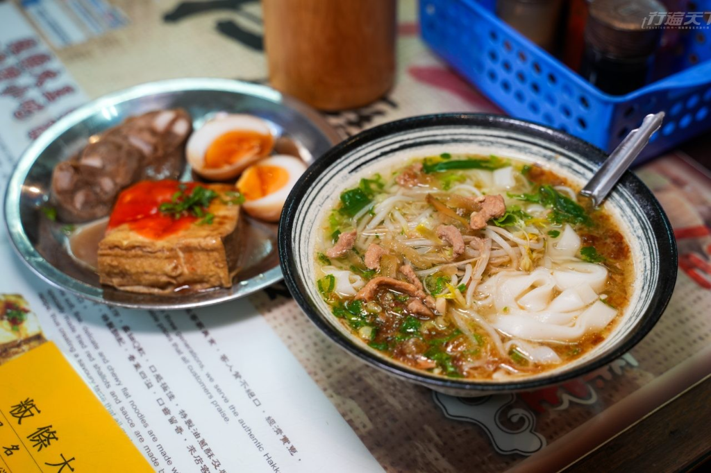 走訪新埔客家庄,若沒吃上一碗熱騰騰的粄條,簡直算是沒來過!這家「粄條大王」坐落鎮上車水馬龍的楊新路,曾榮獲台灣小吃百大名店殊榮,是傳承三代的在地美食代表。粄條以純米漿製成,口感順滑綿軟,無論是乾拌或湯煮,都能品嘗到米香的純粹。店內最受推崇的,莫過於那一杓靈魂「油蔥酥」,香氣醇厚卻不膩口,與滑溜粄條交織出最道地的客家風味。除了粄條,店內的配菜更是令人驚豔。必點的「水煙腸」是新埔特有的客家粉腸,混合地瓜粉漿的軟Q與豬瘦肉塊的口感。這餐不僅滿足了味蕾,更承載了客家人勤儉好客的人情味,為走春之旅平添了一抹暖心滋味。