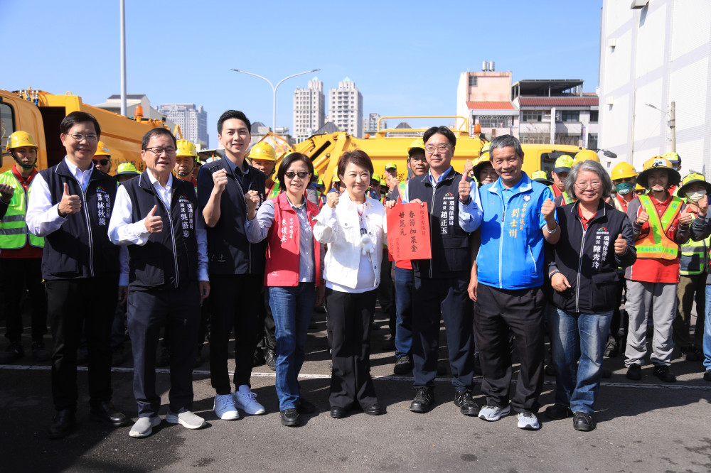 盧秀燕說,2/14開始長達9天的年假,清潔隊同仁依然在工作崗位上為市民服務,所以希望這幾天當大家看到城市英雄時、可以說聲「加油、謝謝!」祝福大家新的一年健康快樂。