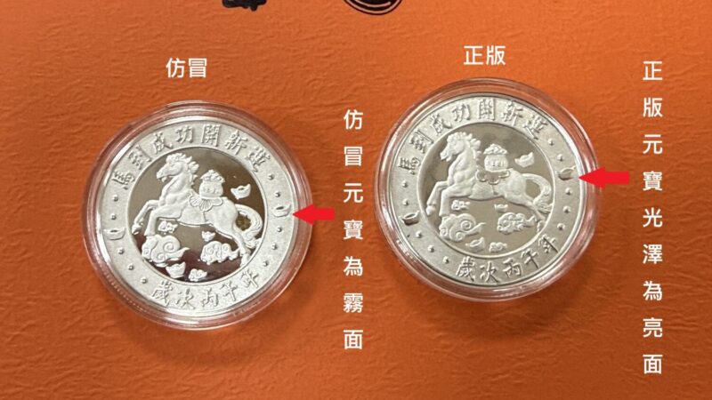 ▲紫南宮馬年套幣真品與偽造對比。(圖/南投縣政府警察局提供)