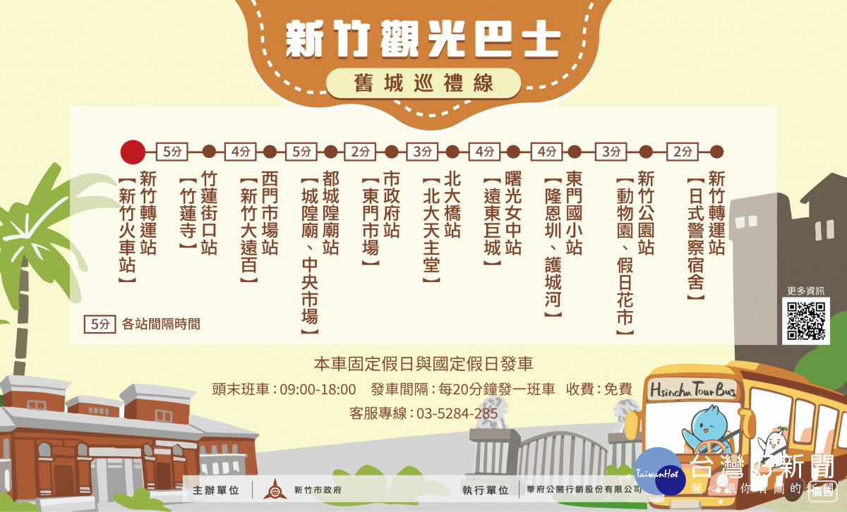 「新竹觀光巴士-舊城巡禮線」今(115)年春節連續假期(2月14日至2月22日)每日正常營運、服務不打烊,更串聯新竹過好年燈會展區、新春市集及舊城景點,讓市民與旅客無論走春、出遊都能輕鬆搭乘,不須擔心人潮眾多的交通問題,是春節旅遊最便利的觀光接駁選擇。