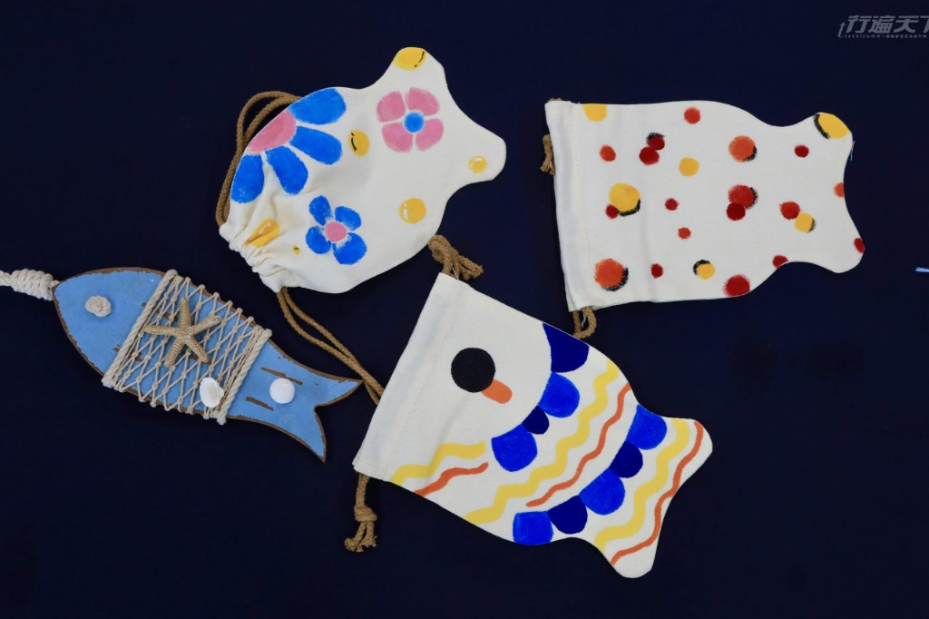 ▲ 蘇班長安心漁場提供多樣DIY體驗,圖為彩繪魚型束口袋。