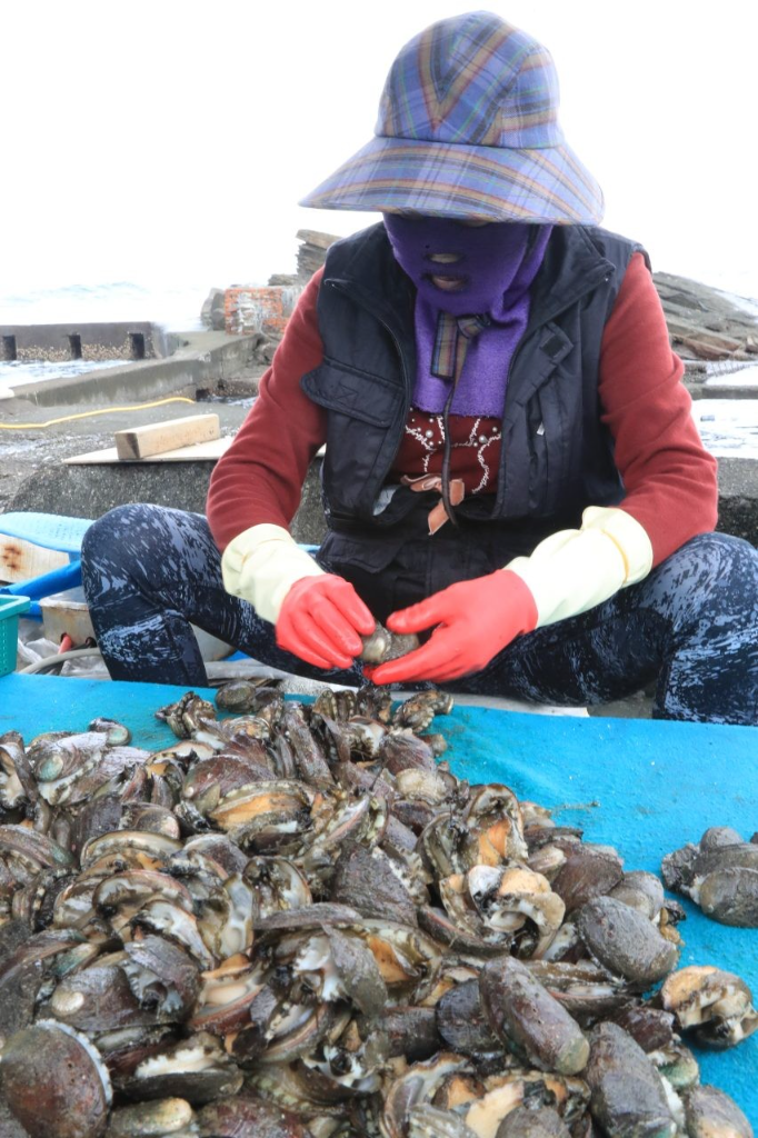 ▲ 海漢子採集上來的九孔,會迅速交由貢寮海女進行分級與品管,然後每5公斤裝成小箱,並立即鮮活送往台北餐廳。