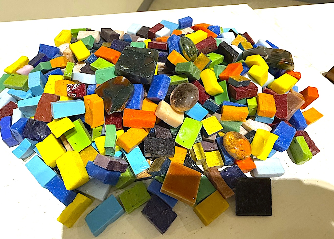 簡源忠畢業於 羅馬美術學院,並曾獲 梵蒂岡推薦,成為 威尼斯景館鑲嵌藝術學院 學生,且是 鑲嵌藝術中心會員。他接受古典鑲嵌壁畫嚴謹訓練,掌握大理石、石英石、蛇紋石、花崗石等材料的切割、敲打與厚薄控制,奠定精準工藝基礎。鑲嵌工藝學名 Mosaico 源自希臘神話女神名字,象徵永恆不朽。簡源忠將古典技法與當代美學融合,每一塊材料的大小、方向、材質與光澤都精心設計,光影、色彩與空間的交錯創造出動人心弦的藝術語彙。
