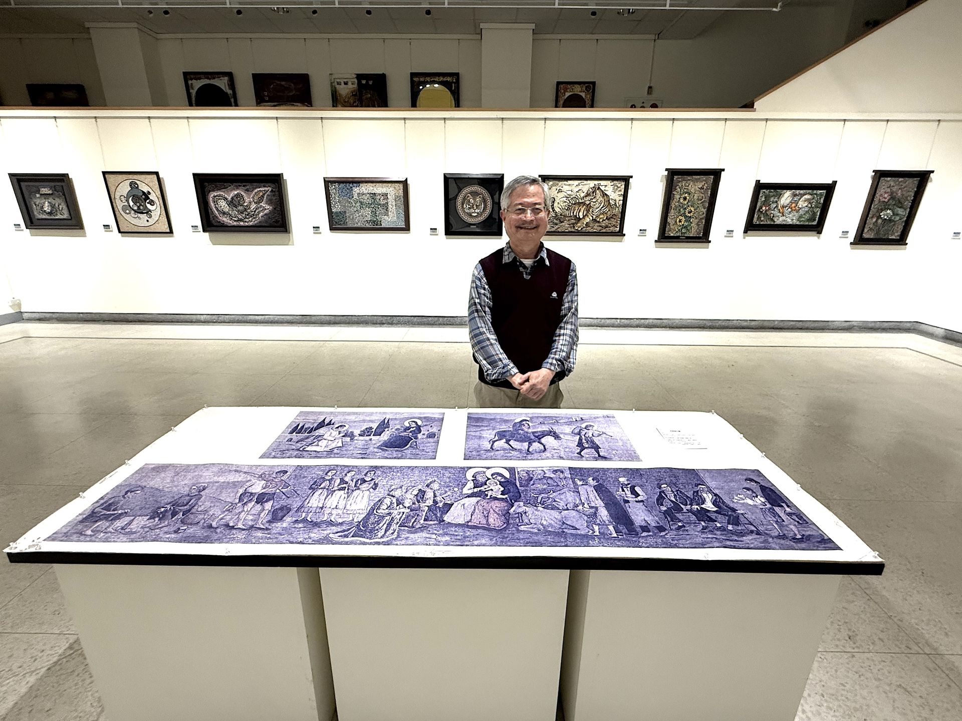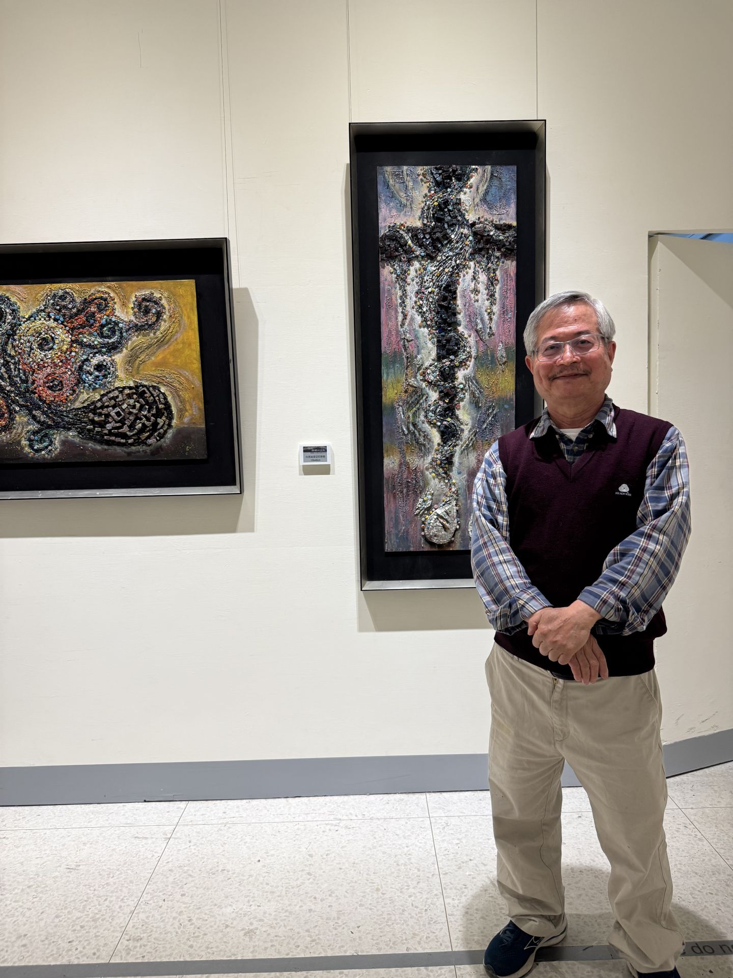 2002年早期代表作 《耶穌避難》馬賽克壁畫 獲 花蓮門諾醫院 收藏,透過宗教意象與溫潤材質傳達庇護與安定的精神。展覽中亦呈現台中地方微創作 《母親之河—麻園頭溪之緣起與圓融》,藝術家透過田野調查,重建早期平埔族文化與河道歷史的情感記憶,將地方歷史、文化與自然生態完美融合。