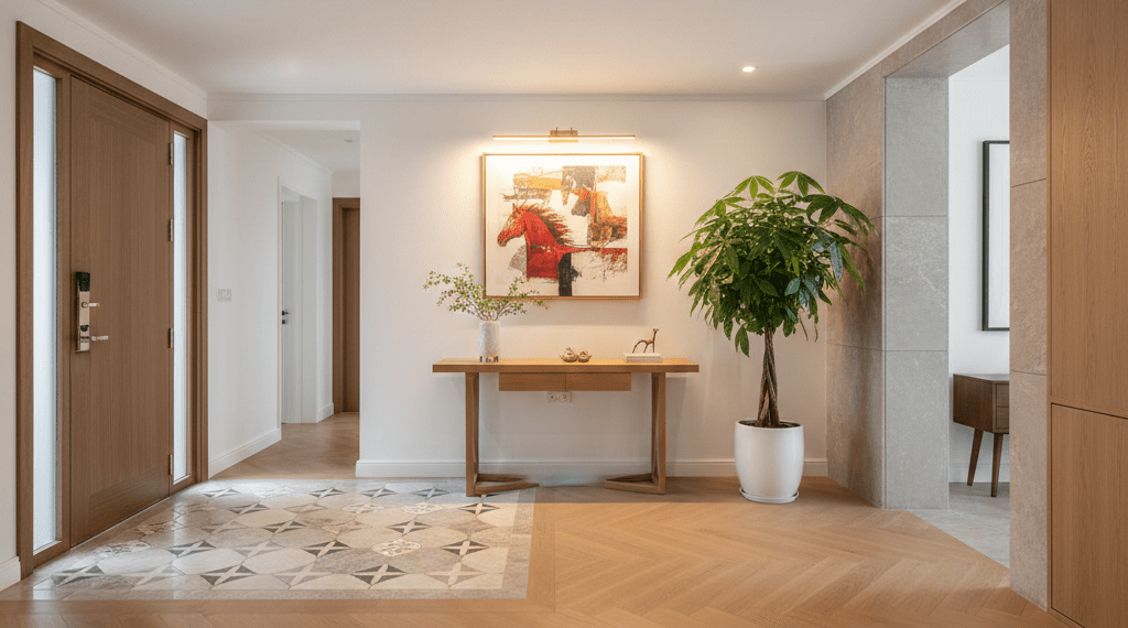 光線與植物是調整風水最快的方式。在馬年這個能量奔放的年份,玄關的環境控制尤為重要。