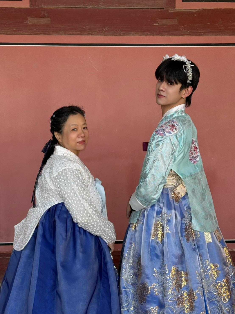 這個要求當然難不倒洪暐哲,「她一開始可能以為我不敢,殊不知我這個人很瘋立刻說好,然後馬上去挑了一件,媽媽當場傻眼,只好認命穿韓服陪我一起。」當母子倆一起穿韓服走在路上,獲得了許多路人的目光,讓媽媽害羞地說:「等一下如果有人問,我要裝作不認識你。」幸好路人們都很友善,一直跑過來說他們很漂亮,還想一起合照,讓媽媽瞬間變得超有自信,整個人氣場全開。