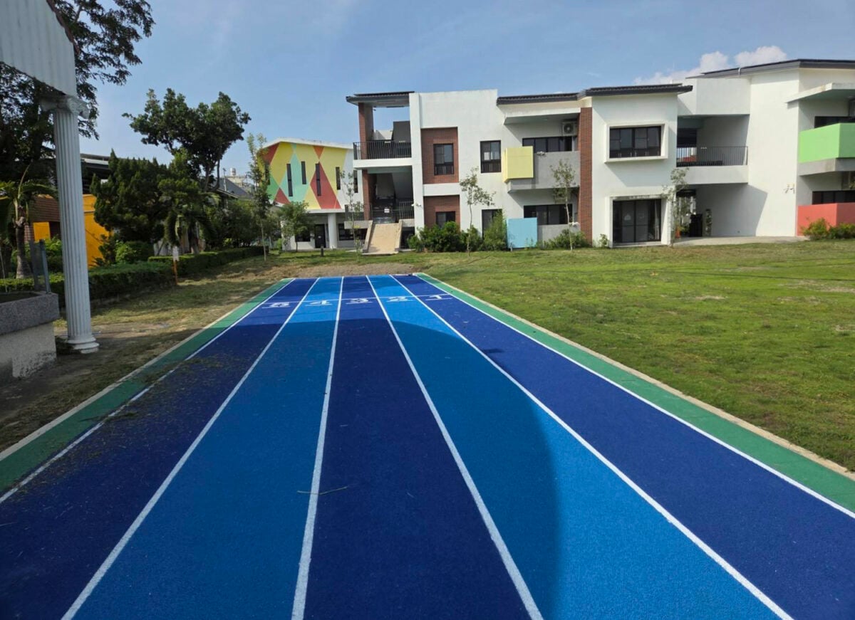 原有操場跑道整修前表層PU幾乎磨損殆盡,甚至出現底層混凝外露的嚴重毀損現象,操場可運動的範圍幾乎只剩下1/3。此次整建工程針對跑道部分只留下60公尺左右的直線跑道,並重新鋪設耐用PU面層,強化運動防護機制,也讓學生可以練習短跑、障礙賽…等,原有的水泥地面改建為草地,讓師生和社區民眾可以親近土地,開闊綠色視野,更多了綜合球場的功能,可以踢足球、打躲避球、丟飛盤…等等。