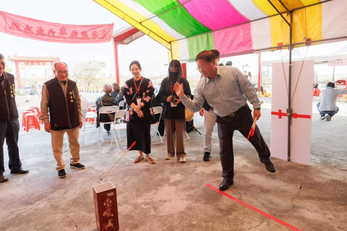 ▲雲嘉南濱海國家風景區管理處徐振能處長,投箭成功進入籤筒中。(照片雲嘉南管理處提供)