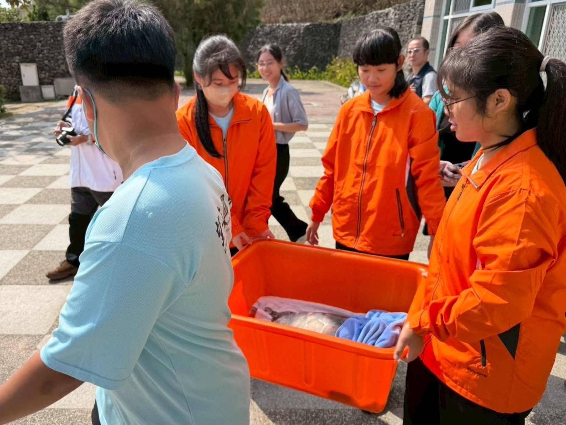 澎湖縣望安國中連結在地海洋特色,以綠蠵龜保育主題辦理生命教育課程,帶領學生實際走訪望安綠蠵龜保育中心。恰逢綠蠵龜野放的珍貴時刻,學生親眼見證綠蠵龜重返大海的瞬間,讓生命教育與海洋保育的抽象理念具體呈現,進而深思棲地威脅與環境保護的重要性。教師認為,透過真實場域學習,學生能獲得別具意義且深刻的學習經驗;同時,課程採用雙語教學模式,由外籍教師協同授課,讓學生在英文引導下,於保護區進行觀察、記錄與討論。課程後期,學生更透過製作雙語簡報探討海洋議題,充分展現語言學習與跨領域整合成果。