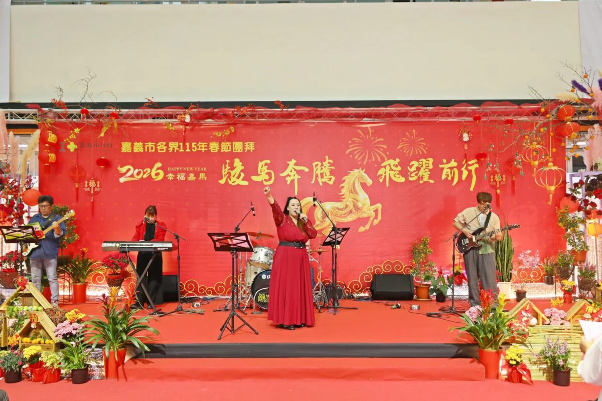 新春各界團拜由阿薩樂團演唱新春組曲,為嶄新一年揭開序幕,並帶領全場合唱320+1城市博覽會主題曲「全嘉一起飛」,象徵各界在新年能持續一起+1,攜手合作,市府未來將持續以永續治理為核心,朝向「經濟共榮、社會共創、環境共生」,三面向邁進,打造幸福美好的嘉義市。
