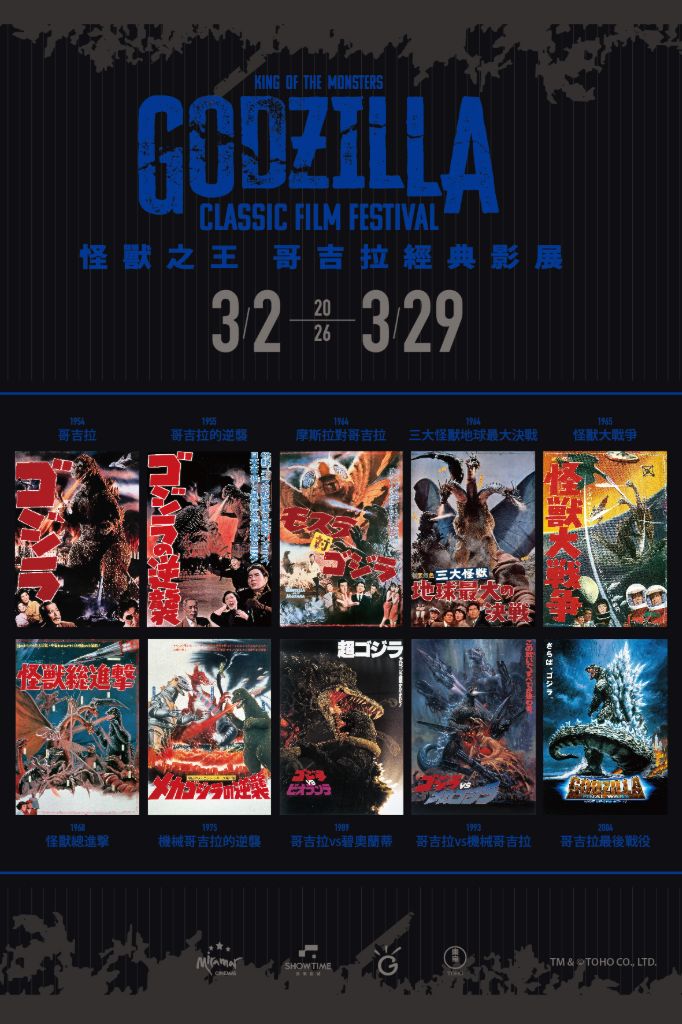 哥吉拉誕生超過70年,這位橫跨半世紀、風靡全球的「怪獸之王」即將再度制霸大銀幕!秀泰影城與美麗華影城宣布,將自3月2日至3月29日於台北、台中、高雄三大城市盛大舉行《怪獸之王 哥吉拉經典影展》。本次影展集結1954年至2004年、橫跨昭和、平成至千禧年的10部代表作,帶領影迷重溫最震撼的怪獸傳奇。