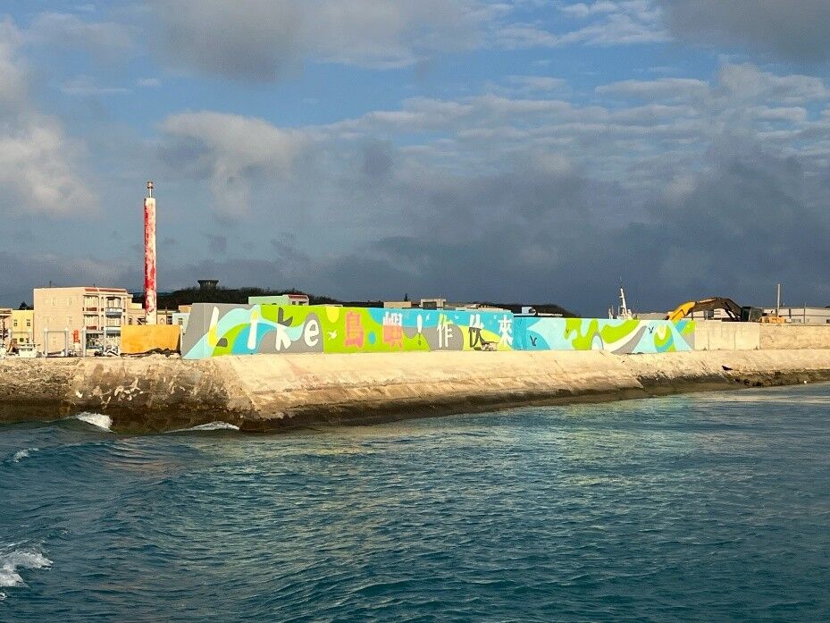 旅遊處表示,鳥嶼堤防彩繪不僅可美化港口環境,更期待透過藝術進入社區,為社區注入更多活力與趣味,同時吸引遊客駐足拍照,帶動地方觀光,提升鳥嶼旅遊知名度。(照片記者葉佳盈翻拍)