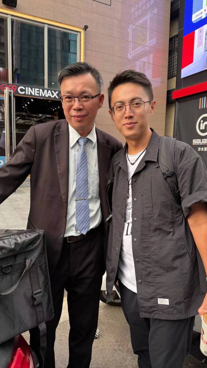 ▲去年「與惡2」在嘉義辦特映會時,林君陽導演(右)與客串演出的尊皇黃三立合影。(照片黃三立提供)