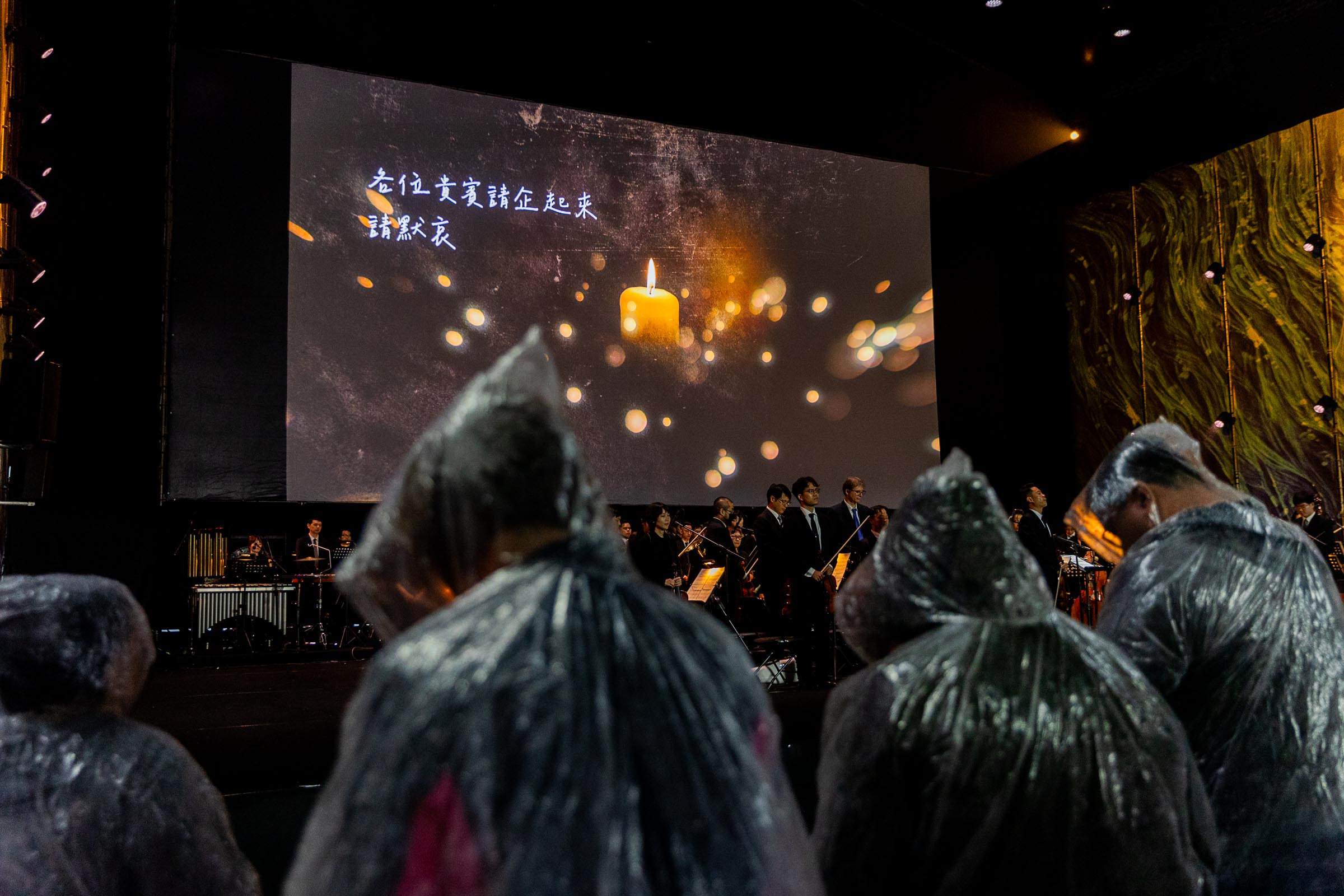 ↑圖說:春藝「佇在我心Formosa」二二八紀念草地音樂會 民眾微雨中參加 音樂會開場前默哀。(圖片來源:高雄春天藝術節/財團法人高雄市愛樂文化藝術基金會提供)