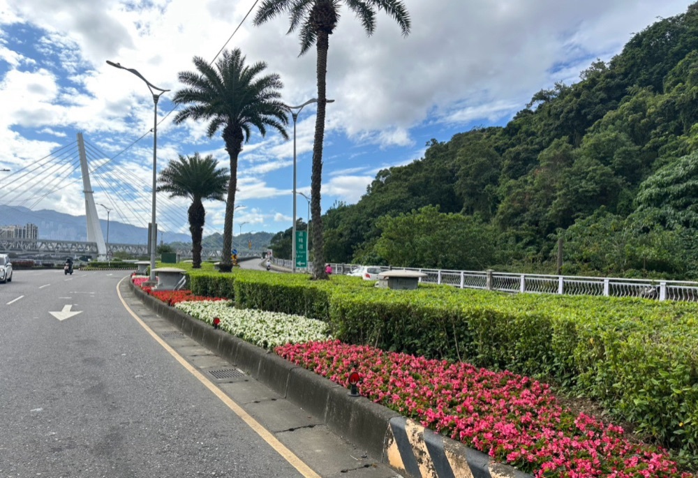 新北市景觀處近日針對各重要道路節點進行景觀優化,利用當季草花打造視覺亮點,讓民眾在春季出遊途中,即可感受行車路廊百花綻放。為替道路景觀注入新意象,永和區新北環快秀朗橋頭端的槽化島,已將草花汰換為具喜氣氛圍的四季秋海棠,包含紅、粉、桃、白等各色,確保都市美感不間斷。
