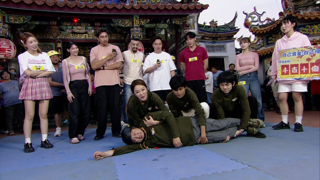 接著藝人隊與鄉親們進行「鋼鐵英雄」對決,藝人完全被在地實力碾壓,頒獎時四位八十歲的大哥突然上前宣布要挑戰胡瓜「吊橋耐力賽」,胡瓜意氣風發應戰,結果腳才剛離地一公分就立刻落敗,反倒是年紀更長的大哥們撐得比他久,讓眾人笑到不行,雖然被調侃得不停,胡瓜仍大方替大家爭取更多獎金,展現主持風度。