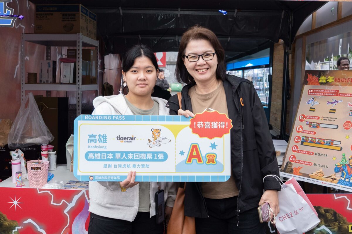 ▲參與「OH!霸賞」現場即時抽的民眾,幸運抽中台灣虎航高雄直飛日本航點任選來回機票。