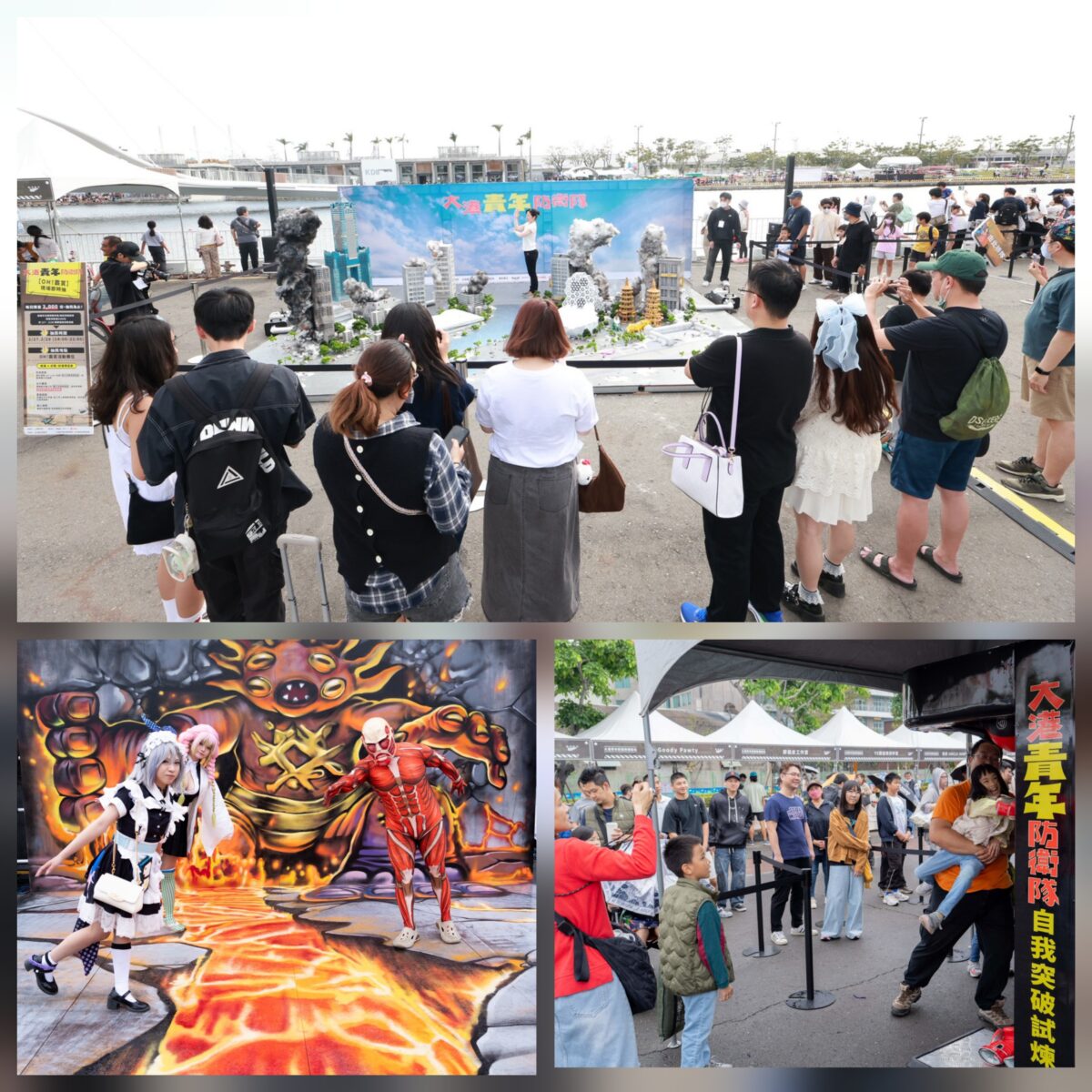 現場其他亮點如「超級青年特訓基地」亦吸引眾多親子排隊同樂,一試身手;由青創店家組成的「親子手作市集」,匯集手作、植栽、寵物用品等,讓民眾在玩樂之餘,能以實際消費支持青年局嚴選的優質店家,拓展青創品牌。活動現場亦可見裝扮精緻的 Cosplayer 穿梭其間,於青年塗鴉藝術家「培特豬」傾力繪製的3D打卡牆前駐足合影,立體透視構圖結合特攝風格元素,帶動社群分享熱度,廣泛擴散城市創意形象。