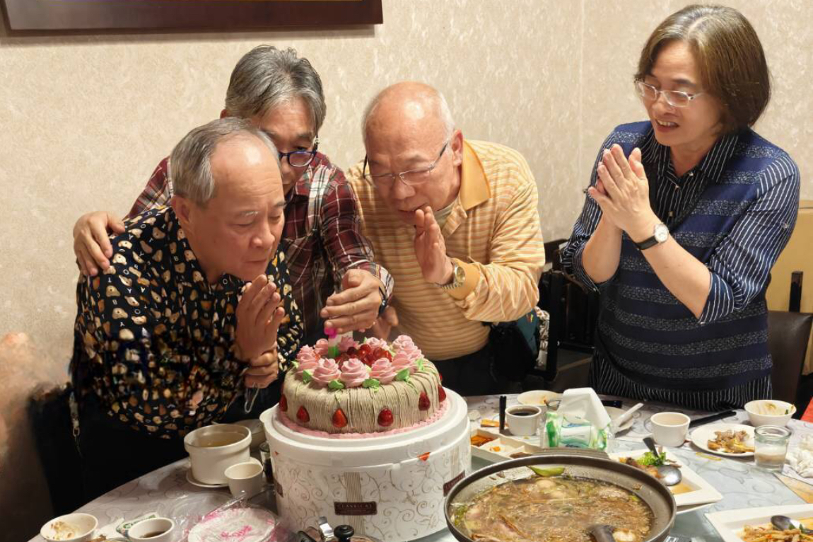 餐席間,立武聊及初戀情人,是闢霞任職教官的同事,闢霞説到在校擔任學生營長,因辦伙品質受到學校高層關切,故親自下廚掌勺,嘉平談及 4 年級擔任實習幹部,究係連長全部指派,亦或連長派任營、連級實習幹部,再由實習營、連長去組成他的班底••••••,諸多舊事,如倒流時光齊湧而出,因佘立德本月底將由僑居地溫哥華返台,又是第五班年度聚會盛事,本次爐主輪由彭玄巧擔綱,立武班長當即視訊,並代邀全桌人員屆時台中出遊共餐,嘉平再言玄巧,當年看上的嫂子,事先扮好的橋段,玄巧西裝革履的莊重,他與益強口嚼檳榔、腳蹬藍白拖的反差,助攻玄巧上榜抱得美人歸,雖是往事如昨,人無兩度少年頭的當下,如今再論真是最甜美的話資。