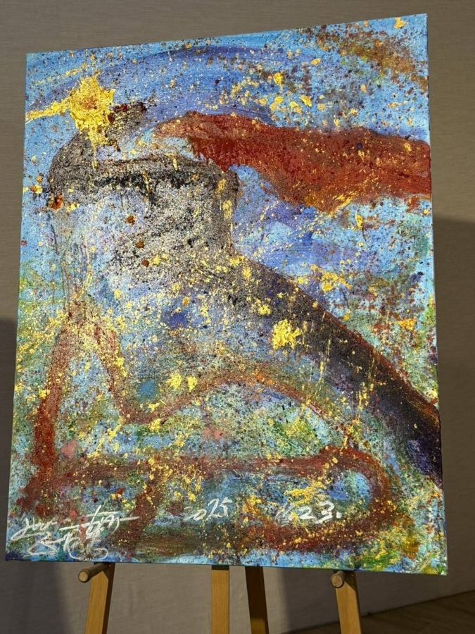 此次發表會上,展示數件「菊岩燒」作品~「台灣超人、大觀、勇氣」菊岩燒立體陶雕,「超人意象、駿馬奔騰、生生不息」菊岩砂寶石粉浮雕膠彩畫⋯等;每件作品都是蔡正勝老師生命力的展現,都有它們的故事。蔡老師把人生的體驗和生命的體悟,融入作品與大家一起分享。