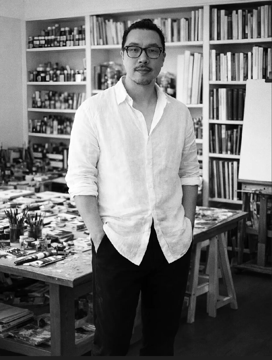 作為全球首位將完整矽晶圓視為傳統畫布的創作者,他採取了一套極為複雜且不可逆的繪畫工法,結合了傳統與現代工藝技術,首先透過網版噴畫與複層光固化色料進行底蘊建構,並在每一次成相後手動微調位置進行重新列印,創造出深邃的影像層次,隨後引入傳統壓克力繪製,並在最後階段以溶劑進行物理性的蝕解與破壞。