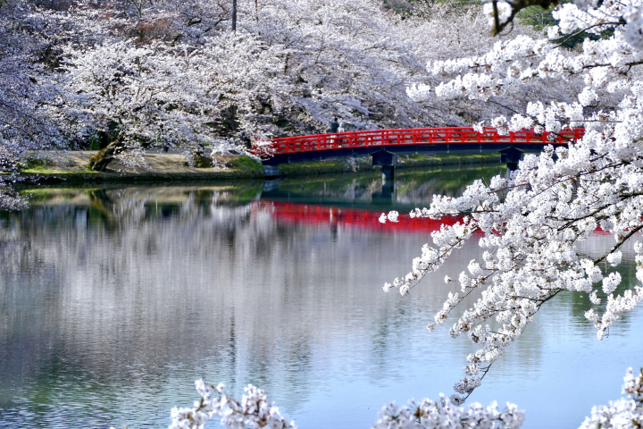 以藏王連峰殘雪為背景,白石川沿岸約8公里櫻花綿延盛放,「一目千本櫻」寓意一眼望去千株櫻花盡收眼底。櫻花、流水與遠山交織成東北最具代表性的春日畫面。