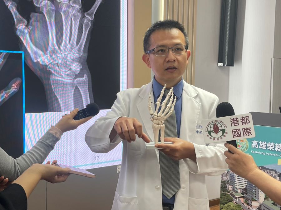 【記者 王雯玲/高雄 報導】拇指雖小,卻主導手部近四成以上的功能表現。中高齡族群常見的「拇指基底關節退化性關節炎」長期疼痛與無力,往往讓患者連開瓶蓋、轉門把、扣鈕釦都備感困難,嚴重影響生活品質與工作能力。高雄榮民總醫院骨科部手外科團隊今(3)日發表新式拇指基底關節人工關節重建臨床成果,針對中重度退化患者進行人工關節植入,術後疼痛顯著改善,握力與捏力明顯提升,患者滿意度高,為治療帶來新的突破。