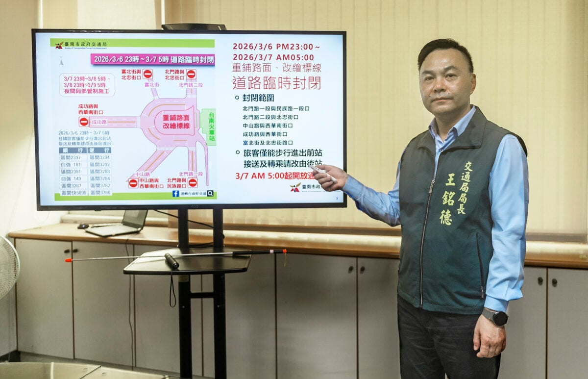 【記者 劉秋菊/台南 報導】臺南市政府交通局辦理「臺南火車站前轉乘、人行環境及公共運輸改善工程」第二階段交維將調整行車動線,為重鋪路面及劃設新標線,3月6日深夜將臨時封閉施工,3月7日清晨起改為新動線,交通局特別提醒用路人,務必提前留意相關管制措施,避開壅塞路段,另32條公車路線亦分別調整在成功路、中山路兩側設置臨時停靠站,以利民眾轉乘接駁。