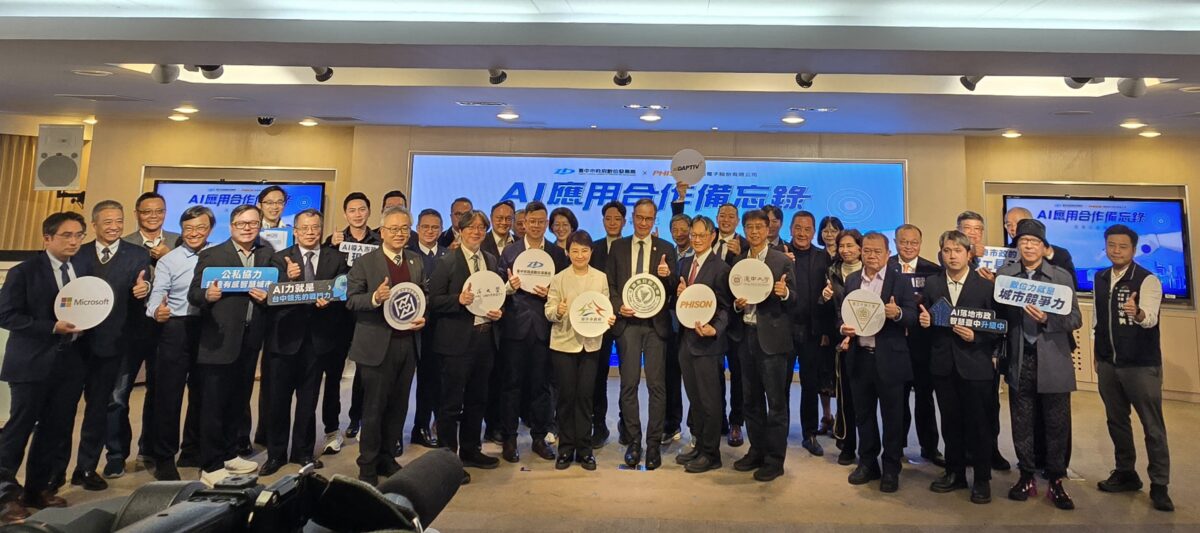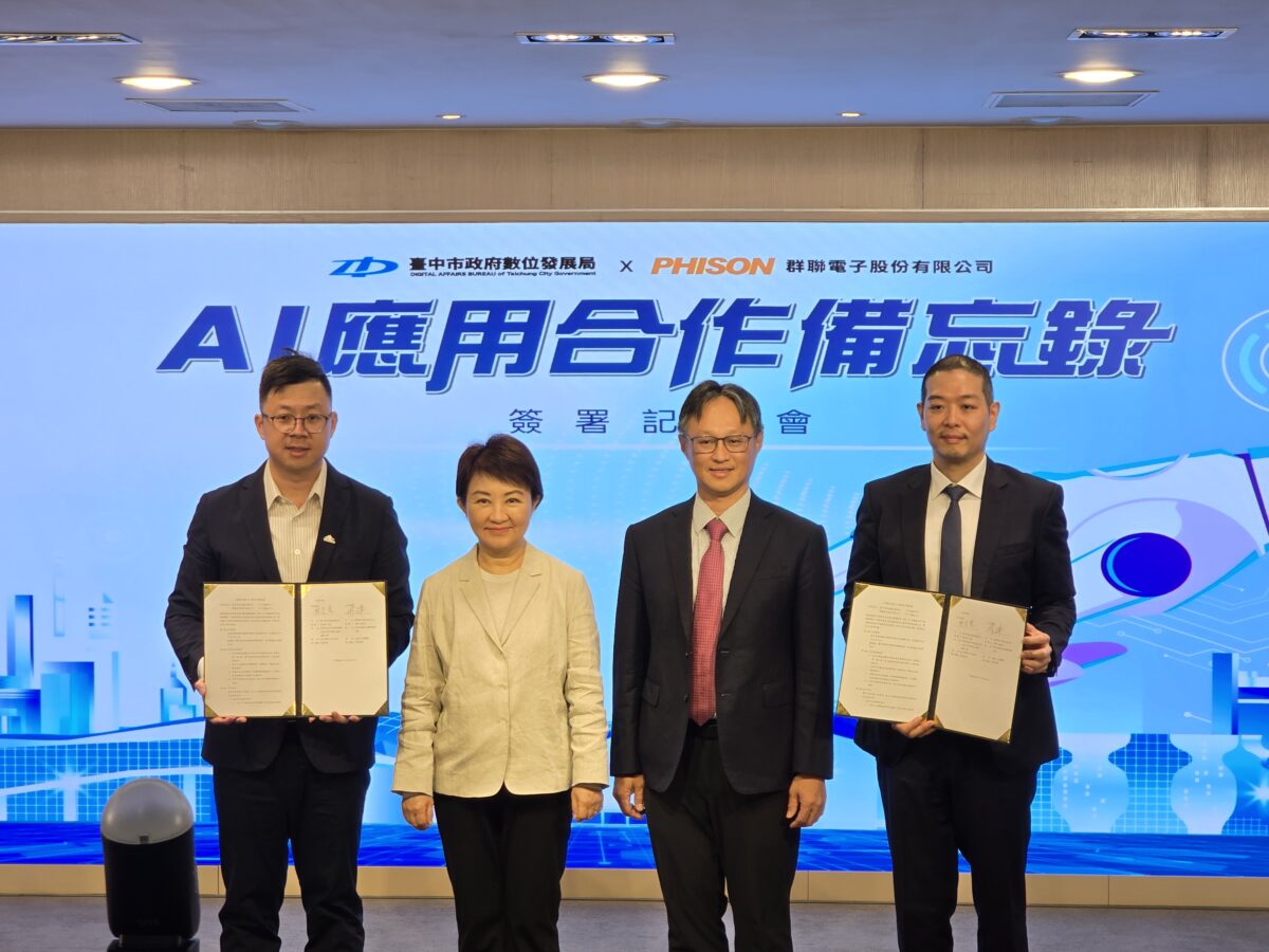 【記者 廖美雅/台中 報導】台中市政府數位發展局於昨(4)日與科技大廠群聯電子舉行「AI 應用合作備忘錄(MOU)」簽署記者會。在台中市長盧秀燕與群聯電子創辦人潘健成的共同見證下,正式啟動雙方在智慧市政領域的深度合作。市長盧秀燕表示,兩年前市府成立全國第1個數位治理局,將城市治理及市民服務線上化。台灣的高科技產業蓬勃發展,業界有技術、有人才、有科技,台中市政府則有資源、有需求,但科技的發展需要專業,相關人才也未必足夠,所以兩者必須結合,而群聯電子大家都不陌生,從發明全球第一支隨身碟,到成為輝達NVIDIA的全球戰略合作夥伴,現今仍是全世界在記憶儲存前三大的晶片設計、製造的廠商,今日MOU簽署是最好的「公私協力」,將最前瞻的AI技術導入市政治理,強化城市競爭力。