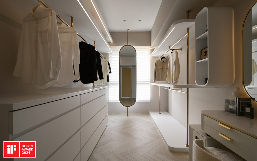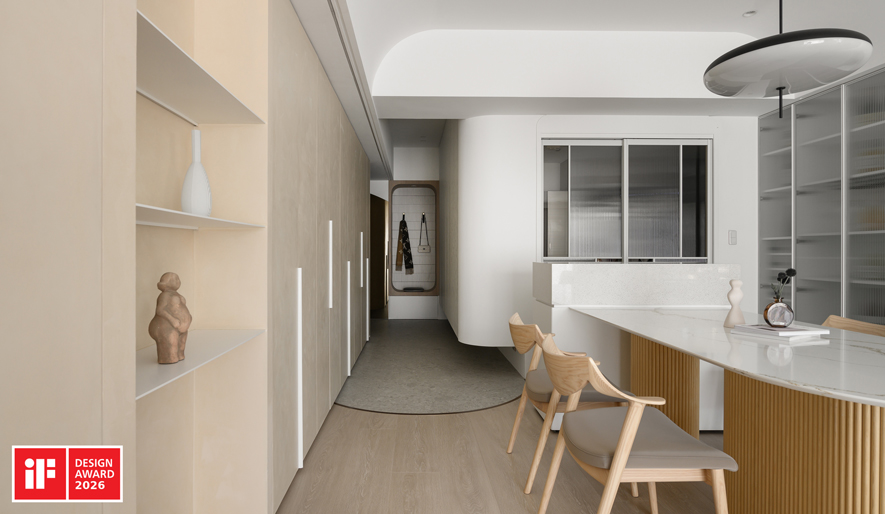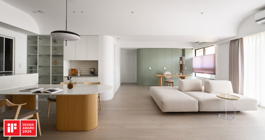 以重劃開放式格局、多向動線規劃、可自由組合的雙向沙發為空間主軸,並透過全案圓弧轉角與訂製圓角家具提升居家安全性,同時嚴選低甲醛回收建材,致力打造健康無毒的宜居環境,作品《雲暮》精準詮釋大賽核心宗旨,喜獲「Winner」殊榮,充分展現品牌一貫精湛的設計美學與專業實力!