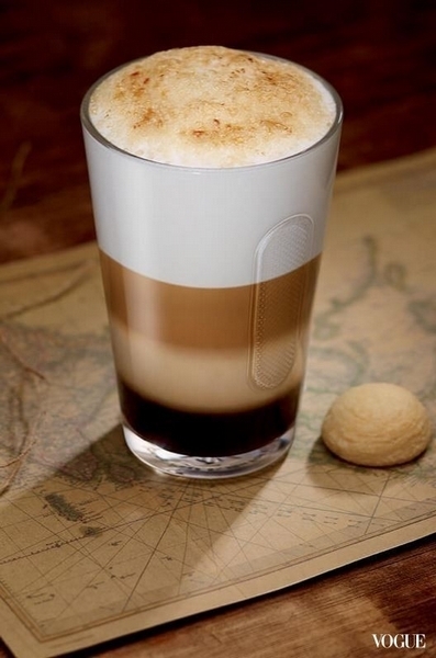 材料:2份義式濃縮咖啡(80毫升)、15毫升淡鹽焦糖奶油或焦糖風味糖漿、100毫升新鮮牛奶、蔗糖