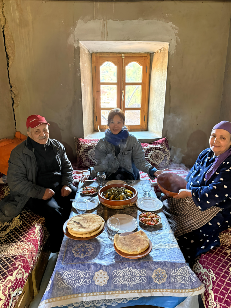 ▲ 蔡健雅(中)在摩洛哥與當地柏柏人家庭用餐。(圖:躍耳娛樂)